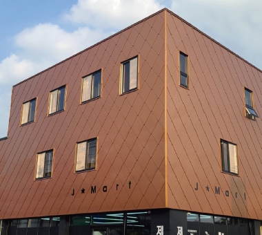 거멀접기 공법에 알맞게 가공 함으로써 평활도를 극대화 시킨 혁신적인 지붕 및 외벽 마감재 입니다.