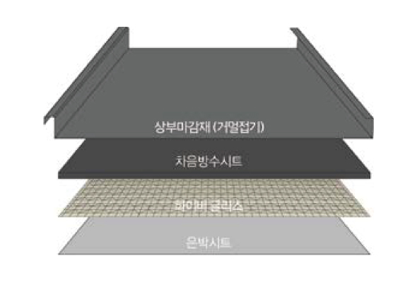 무소음징크는 기존의 시스템에 열반사 차음시트를 결합하여 일체화시킨 제품으로
